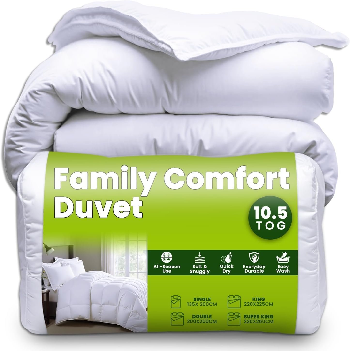 Easy to care for, this duvet is machine washable at 40°C, quick-drying, and designed to stay soft and fluffy with minimal effort. Simply wash, dry, and enjoy that freshly made bed feeling every time.