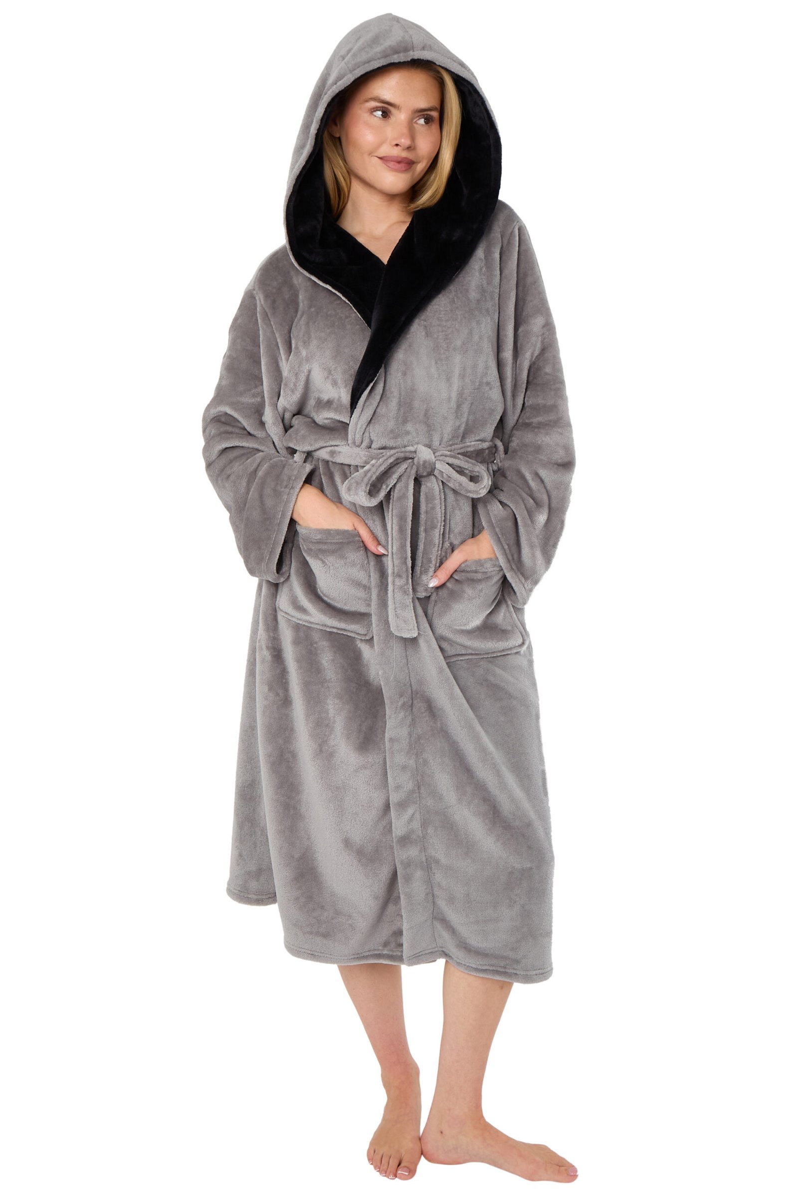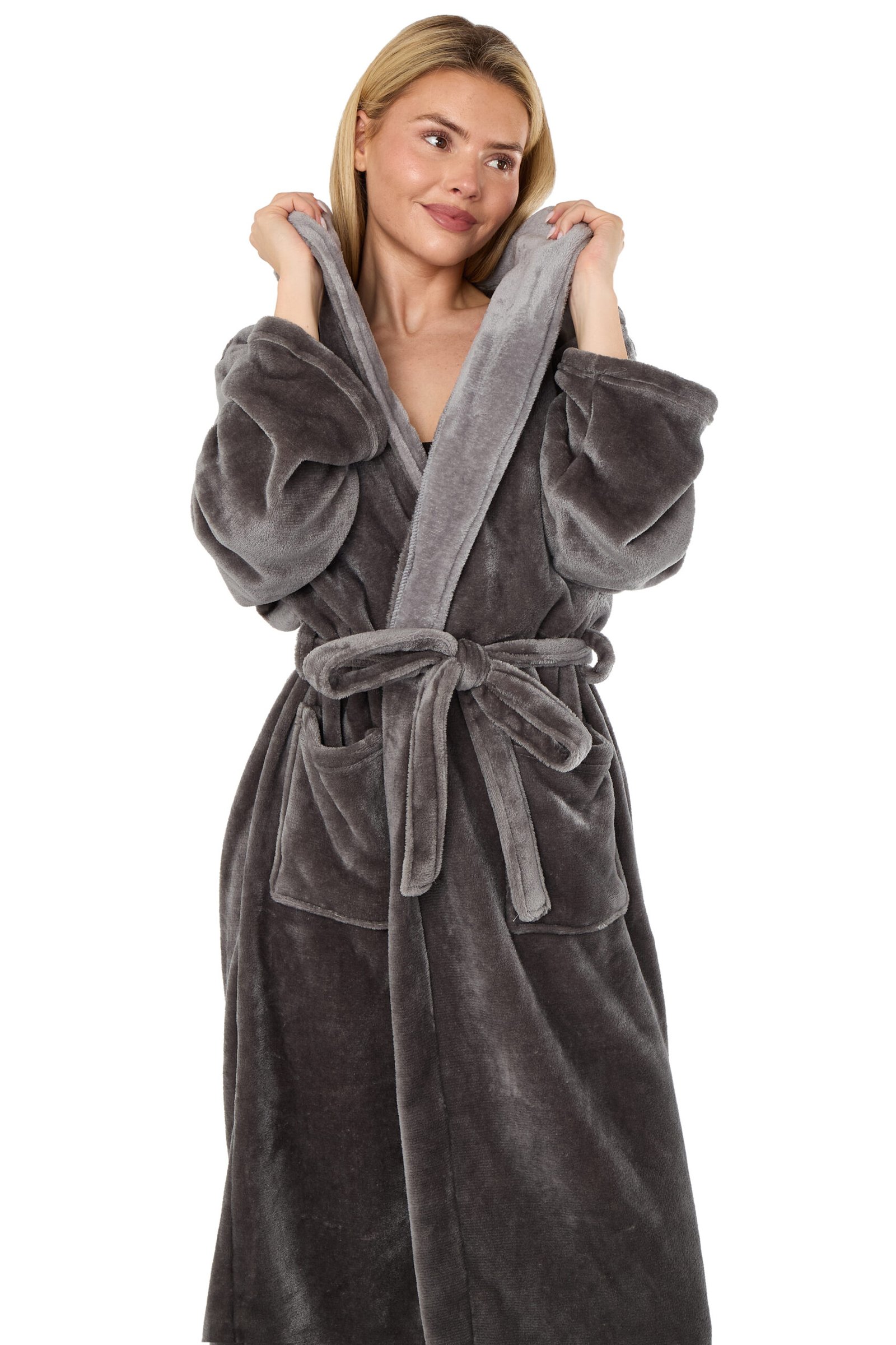 The cosy hood adds an extra layer of comfort, while the classic shawl collar creates a timeless and elegant look. Designed as a unisex dressing gown, it’s perfect for both men and women who value high-quality loungewear that feels as good as it looks. The soft flannel fleece texture provides gentle warmth, turning every moment at home into a calming retreat.