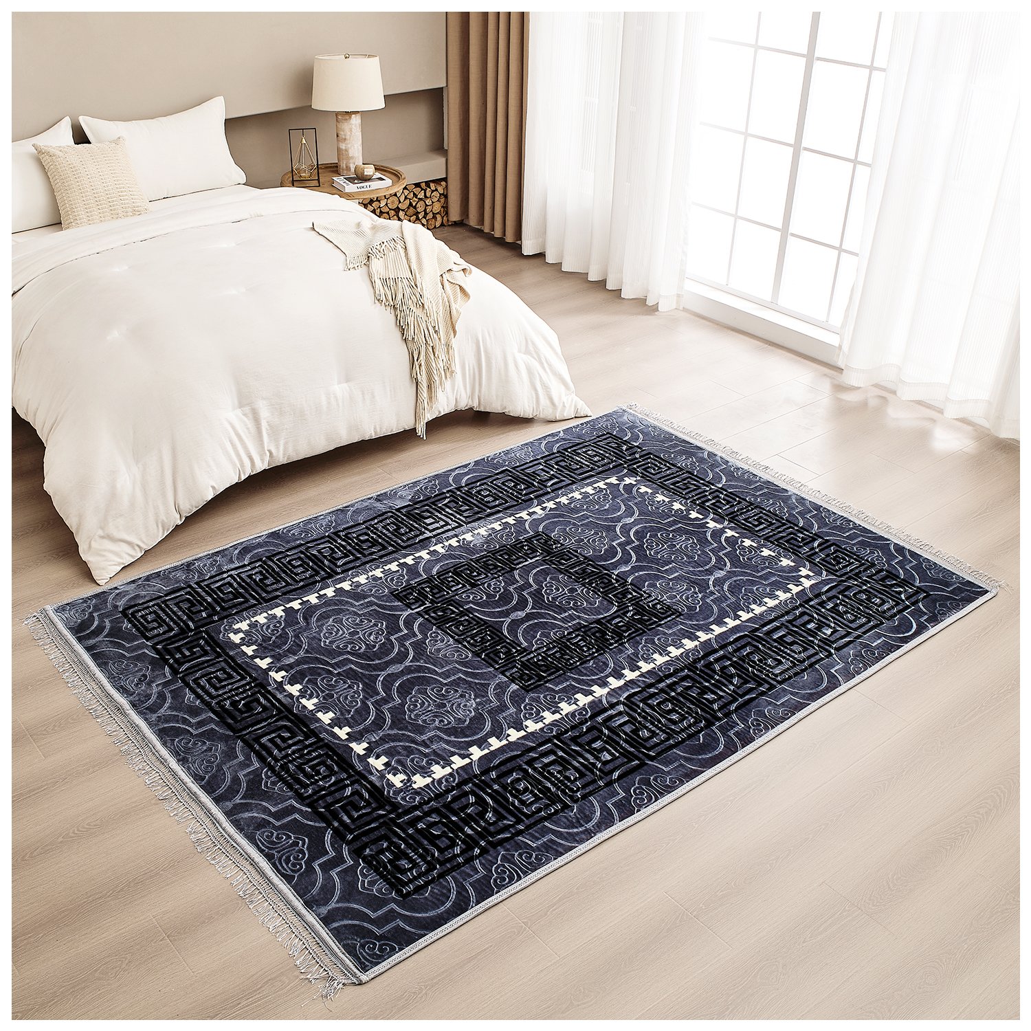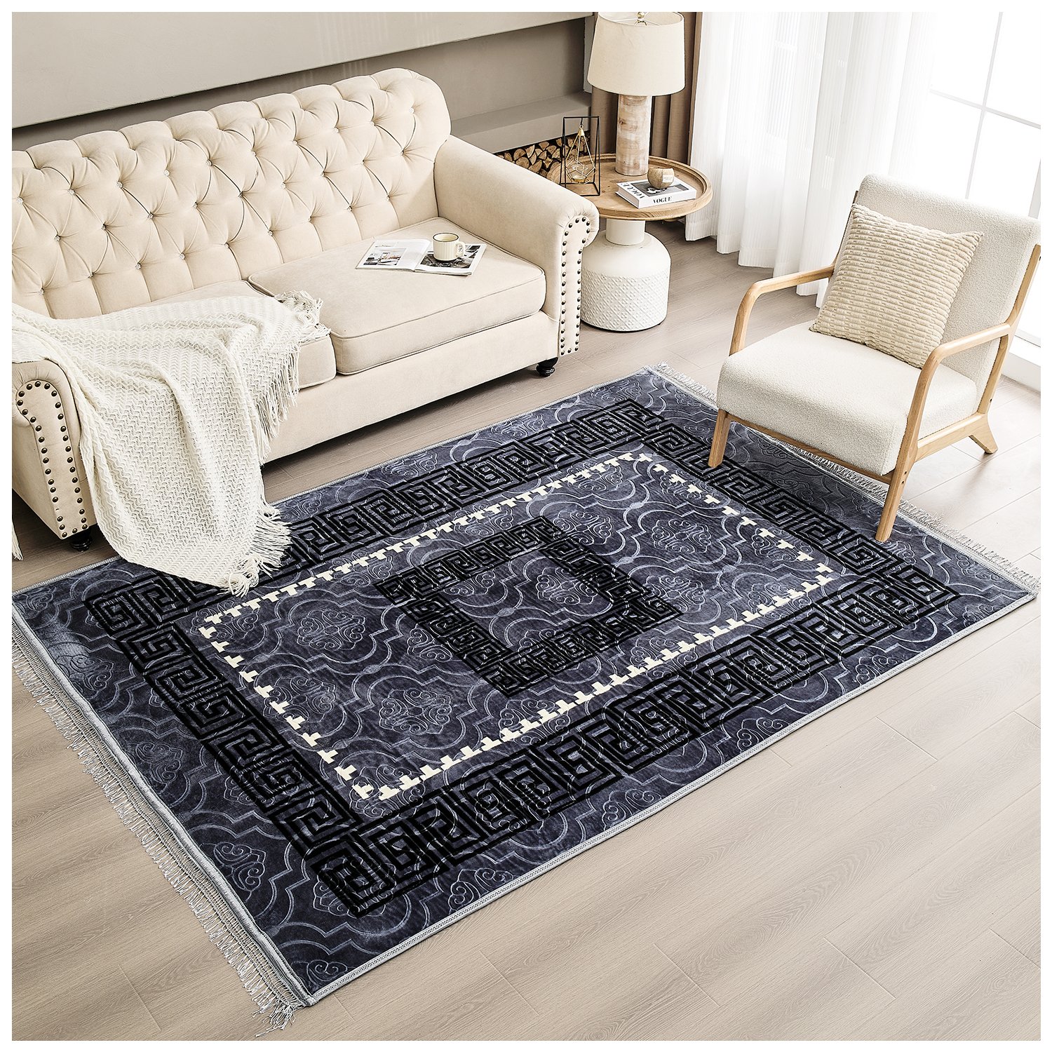 Introduce timeless elegance into your home with the Harbour Greek Rug. Beautifully designed statement piece inspired by classic Greek artistry. This luxurious rug blends traditional detailing with modern sophistication, creating a striking centrepiece that elevates any room. The bold Greek key border frames an intricate, textured pattern across the surface. Offering both visual depth and a refined decorative touch. Available in four stylish colours, including Black, Charcoal, Grey and Natural. It allows you to choose the perfect shade to complement your interior style.
