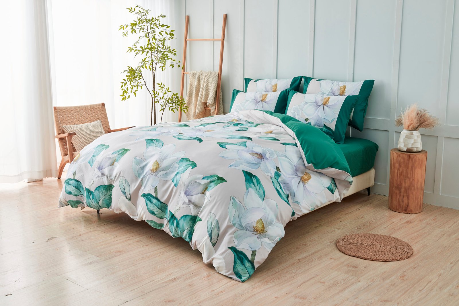 Available in Double and King sizes, the Myla Microfiber Duvet Set fits beautifully on your bed and adds visual depth with its vibrant green tones and soft floral detailing. It is a wonderful choice for those who appreciate comfort, beauty and practicality in their bedding.